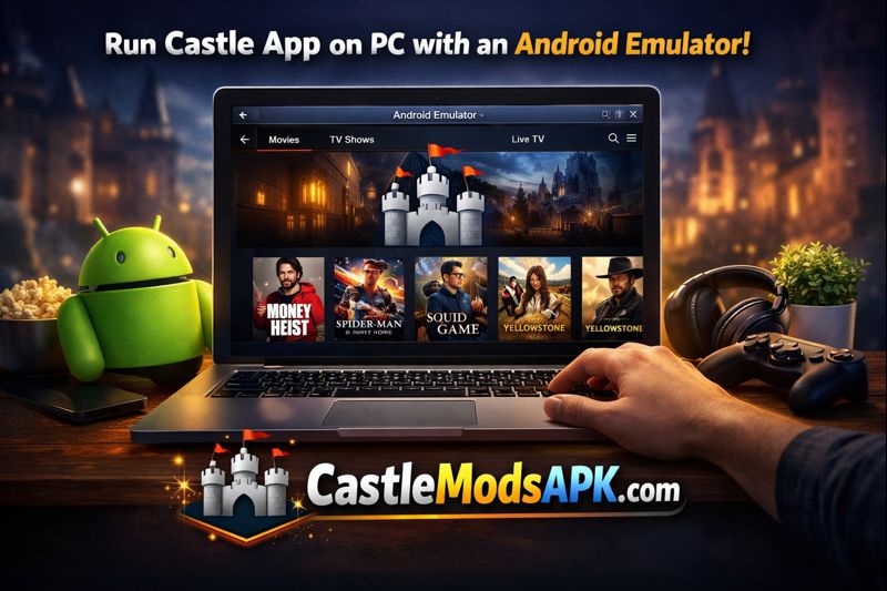 An Android emulator is a program that creates an Android environment on your laptop, allowing you to run mobile apps like the castle app for laptop.